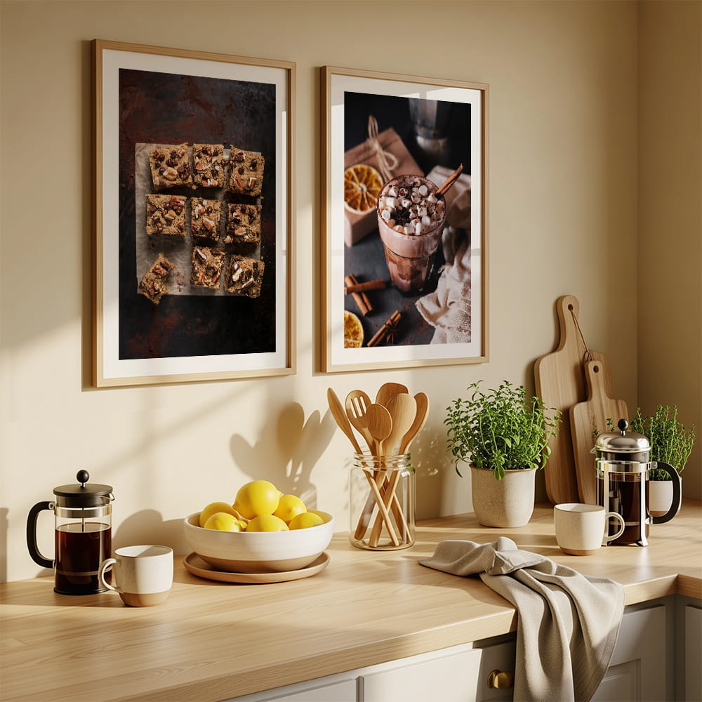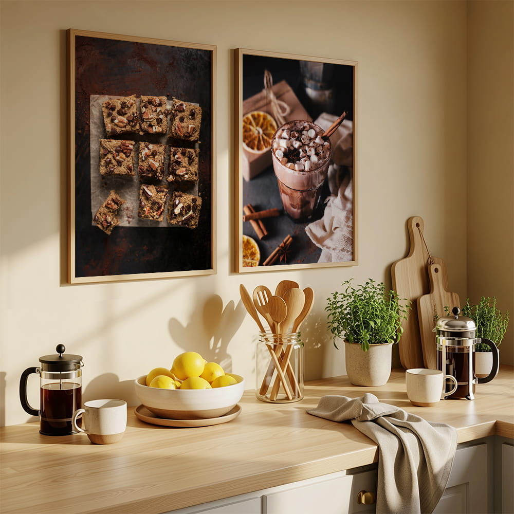 Starannie dobrane ujęcia podkreślają domowy klimat, smakowity charakter kompozycji i dekoracyjny potencjał plakatów. Dzięki temu galeria dobrze odnajduje się we wnętrzach, w których liczy się przytulność, estetyka i subtelny akcent związany z kulinarną przyjemnością.