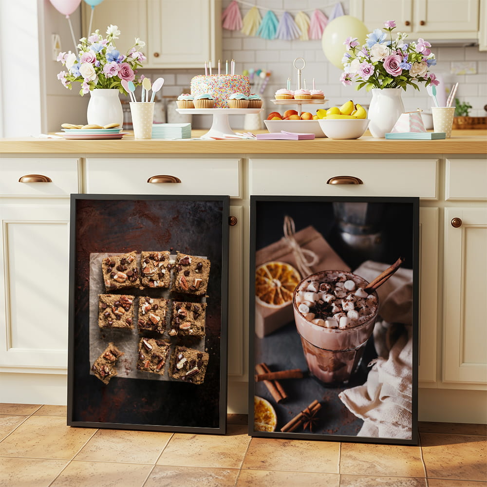 Galeria plakatów doskonale sprawdzi się jako dekoracja ścienna do kuchni, jadalni, kącika kawowego lub lokalu gastronomicznego. To propozycja dla miłośników stylowych dodatków i ciepłych aranżacji, która wprowadza do wnętrza smakowity, elegancki akcent inspirowany słodką chwilą przyjemności.