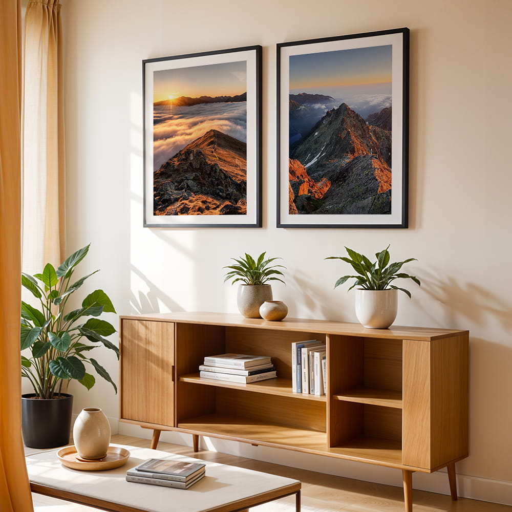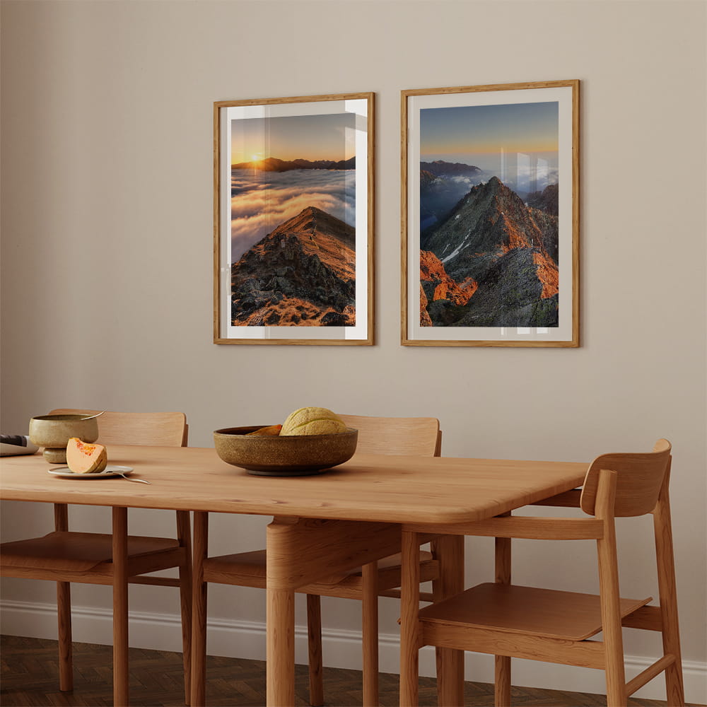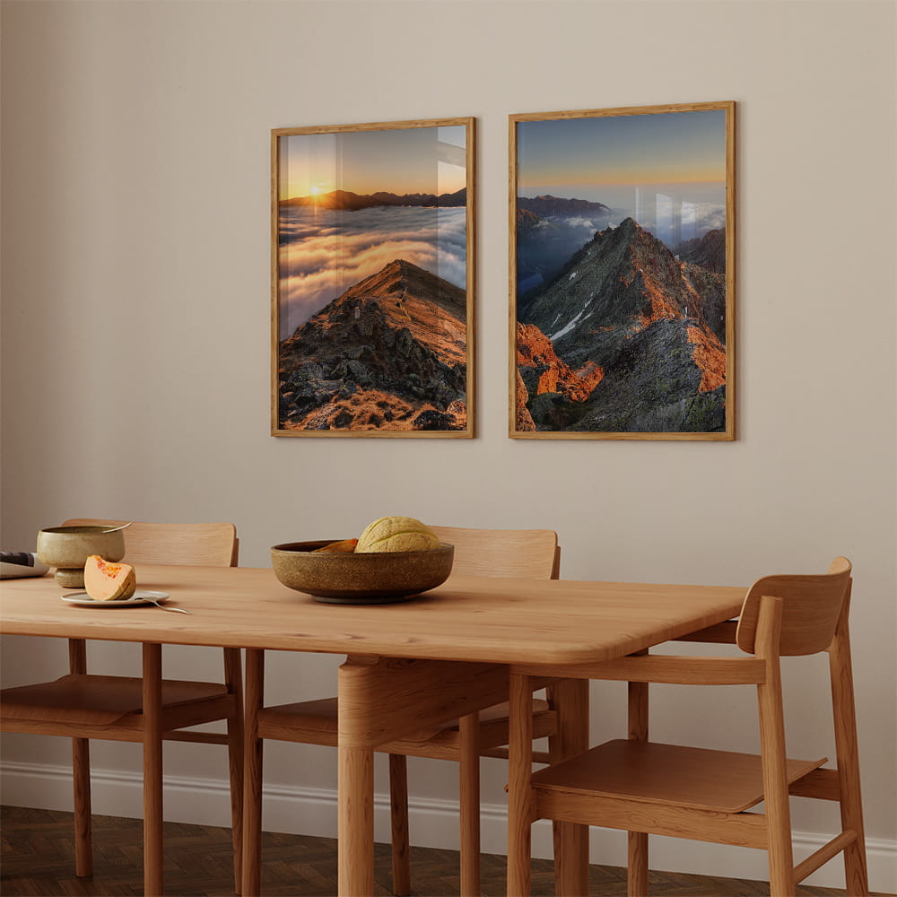 Jasne kadry i ciepłe światło podkreślają formę gór, głębię krajobrazu oraz naturalny rytm tatrzańskich widoków. Dzięki temu galeria dobrze oddaje atmosferę dnia w górach, a jednocześnie zachowuje elegancki i ponadczasowy charakter, który dobrze wpisuje się w estetykę nowoczesnych wnętrz.