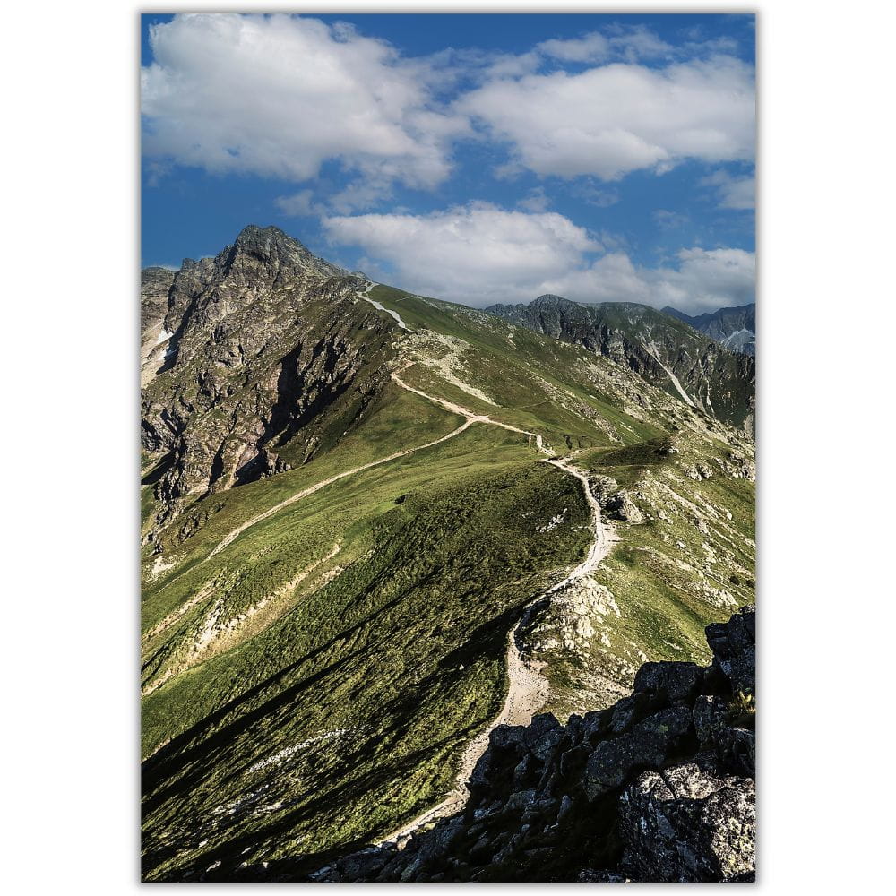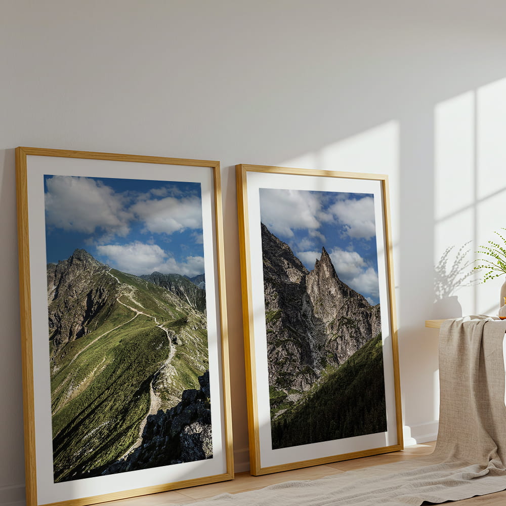 Galeria Plakatów Tatry - Świnica i Mnich przedstawia dwa wyjątkowe kadry inspirowane jednymi z najbardziej rozpoznawalnych miejsc w Tatrach. Fotografie ukazują charakterystyczne szczyty, górskie stoki oraz naturalny układ terenu, które razem tworzą spójną kompozycję o wyrazistym, tatrzańskim charakterze.