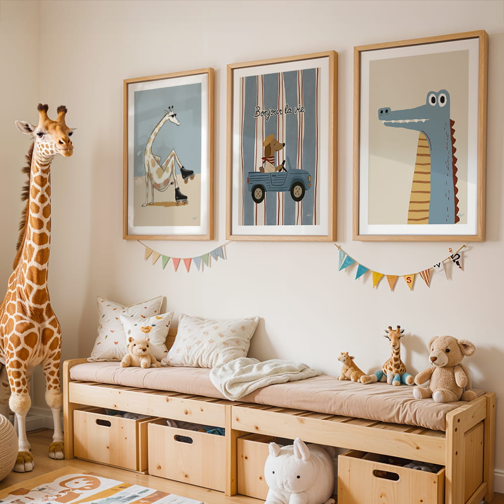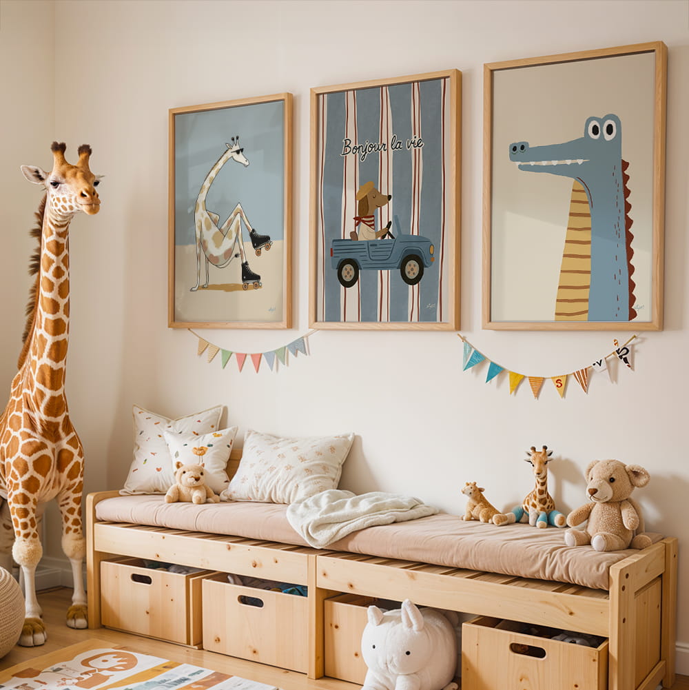 Starannie dobrane plakaty wprowadzają do wnętrza ciepło, beztroskę i odrobinę humoru. Zwierzęce ilustracje pomagają stworzyć przestrzeń sprzyjającą zabawie, odpoczynkowi i codziennym chwilom w otoczeniu przyjaznych motywów. Taka galeria dobrze odnajduje się zarówno w pokoju malucha, jak i starszego dziecka.