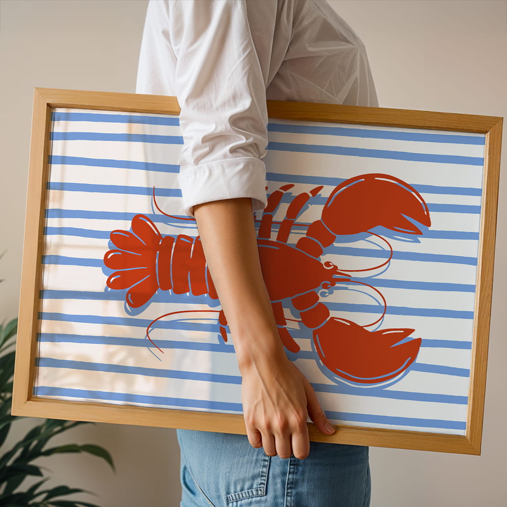 Grafika świetnie sprawdzi się w kuchni, jadalni, restauracji lub aneksie kuchennym, nadając przestrzeni lekkości i oryginalnego wyrazu. Motyw aragosty doskonale wpisuje się w aranżacje nowoczesne, śródziemnomorskie, minimalistyczne i retro. To dekoracja, która subtelnie podkreśla charakter wnętrza i wprowadza do niego świeży, kulinarny akcent.