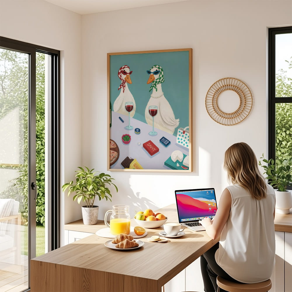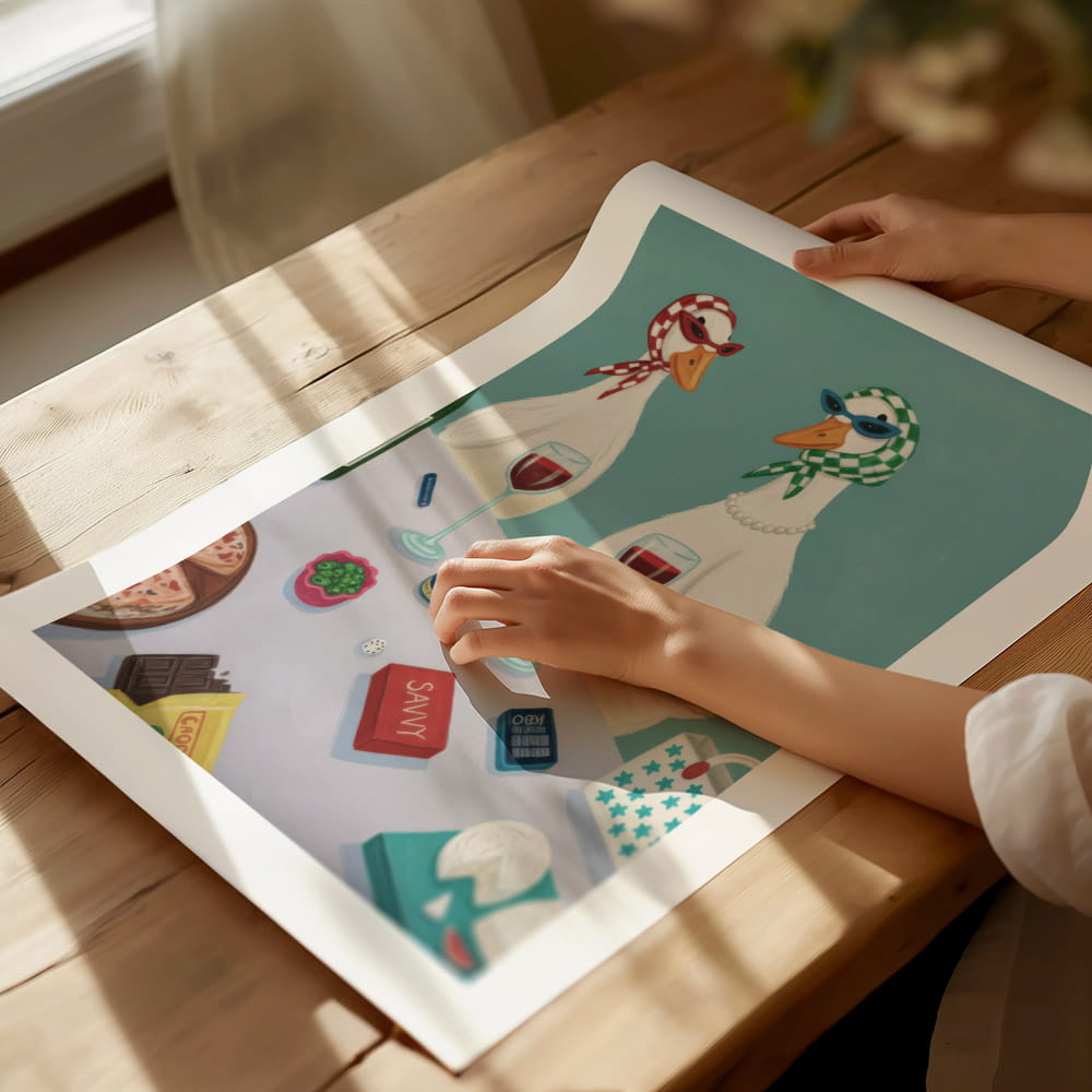 tagi: gęsi, plakat gęsi, ilustracja gęsi, plakat humorystyczny, plakat do kuchni, plakat do jadalni, plakat z winem, plakat retro pastelowy, nowoczesna ilustracja, dekoracja kuchni, plakat z ptakami, plakat zabawny, plakat do salonu, gęś ilustracja, plakat artystyczny, pastelowe plakaty, plakat z jedzeniem, plakat na prezent;