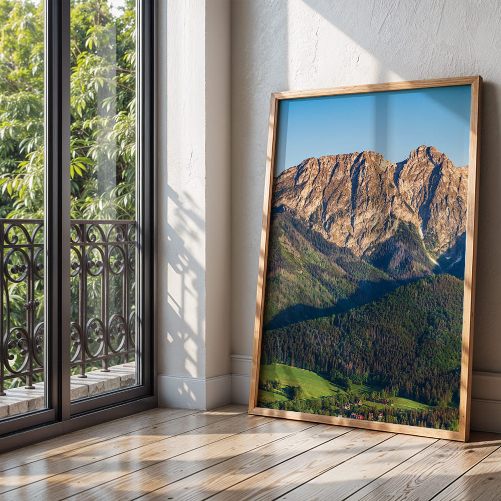 Fotograficzny plakat z Giewontem będzie efektownym akcentem w salonie, sypialni, gabinecie lub przedpokoju. Wprowadza do wnętrza atmosferę spokoju, bliskość gór i wyrazisty pejzaż jednego z najbardziej rozpoznawalnych miejsc w polskich Tatrach.