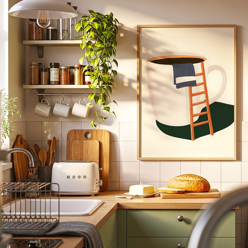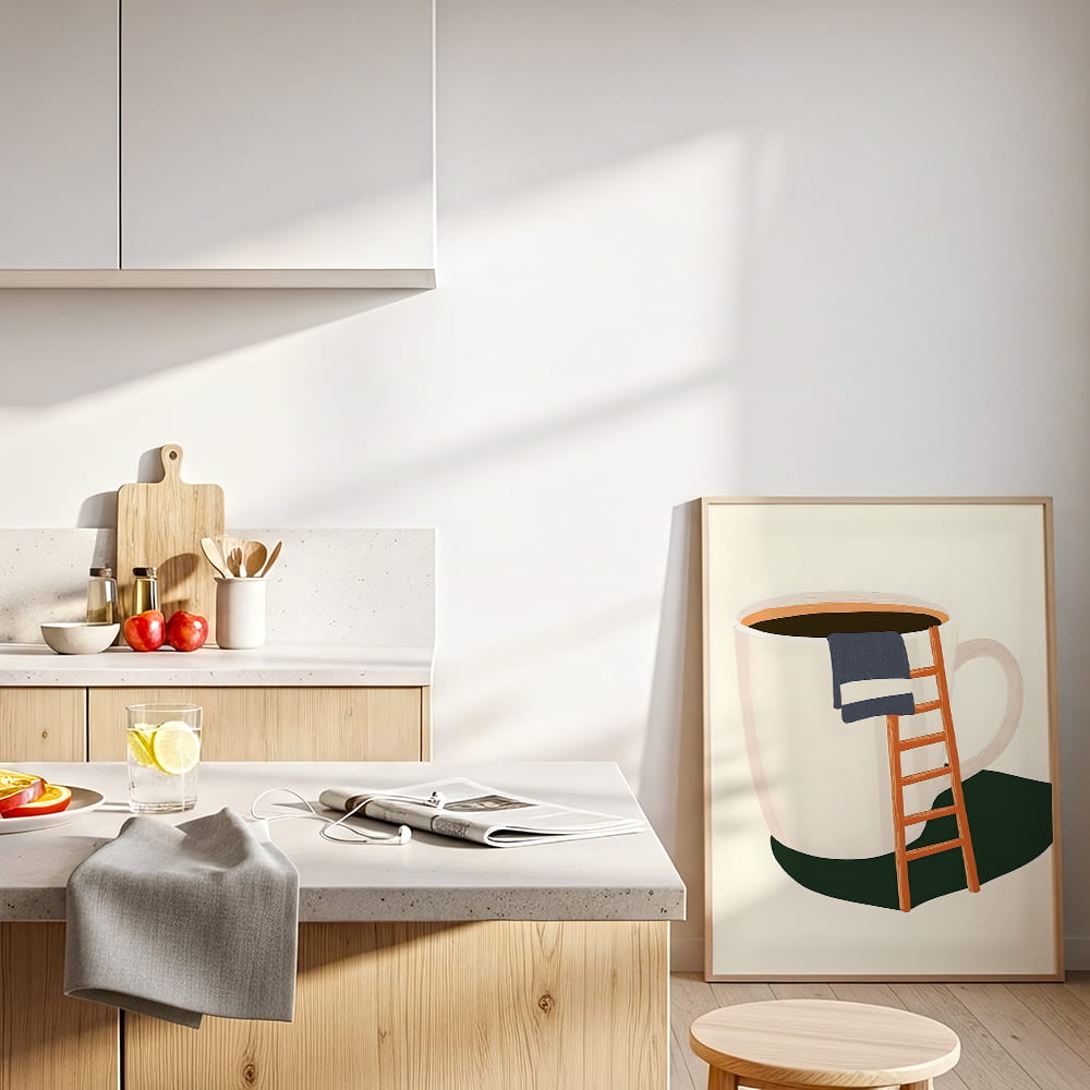 Motyw kawy doskonale wpisuje się w przestrzenie takie jak kuchnia, jadalnia, kawiarnia, biuro czy domowy coffee corner. Plakat może dodać wnętrzu ciepła, lekkości i codziennej energii, a jednocześnie podkreślić jego indywidualny charakter. To świetny wybór dla osób, które cenią dekoracje związane z jedzeniem, napojami i przyjemnymi rytuałami dnia.