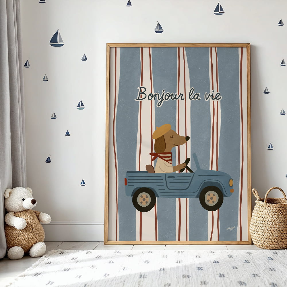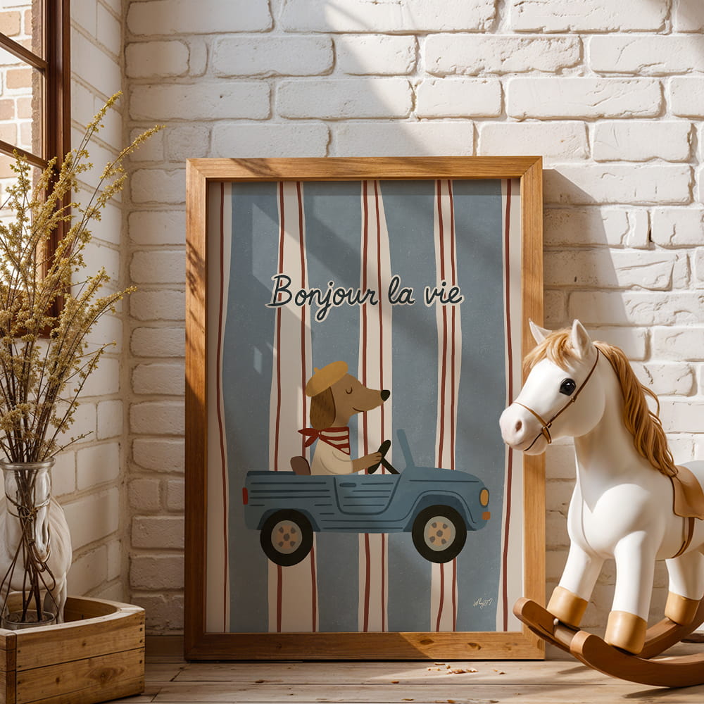 tagi: grafika, grafiki, graficzny, dla dzieci, plakat pies, plakat pies w samochodzie, plakat dla dzieci, plakat francuski, plakat do pokoju dziecięcego, plakat humorystyczny, plakat pies kierowca, plakat boho, plakat pastelowy, plakat retro;