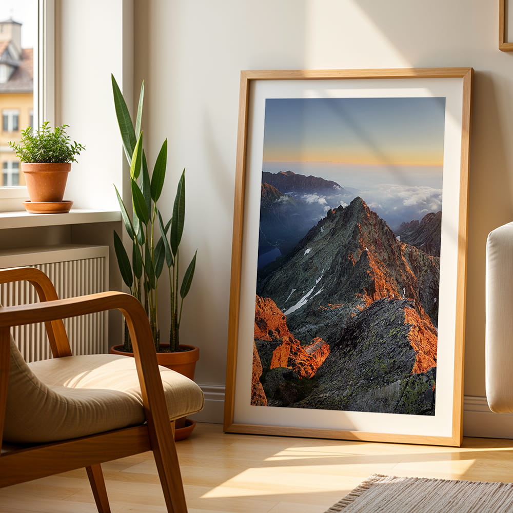Plakat Tatry - widok z Rysów będzie idealnym wyborem dla osób, które lubią górskie pejzaże, tatrzańskie szlaki i dekoracje ścienne inspirowane polską przyrodą. To także świetny pomysł na prezent dla miłośnika Tatr i wyjątkowych widoków.