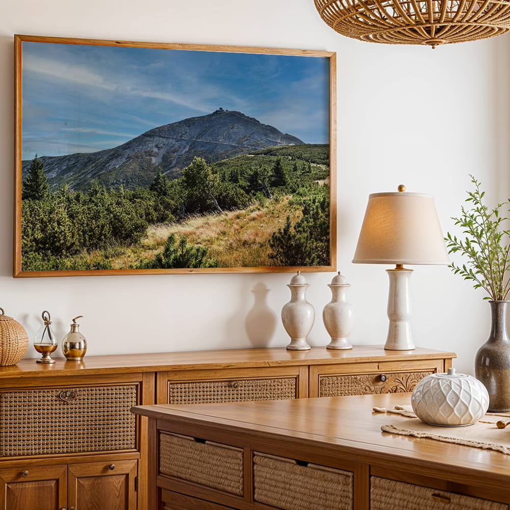 To doskonała propozycja dla osób, które cenią fotografię górską, krajobrazy Karkonoszy i dekoracje inspirowane naturą. Plakat z widokiem na Śnieżkę świetnie odnajdzie się we wnętrzach nowoczesnych, minimalistycznych, skandynawskich i naturalnych, dodając im lekkości, świeżości i spójnego charakteru.
