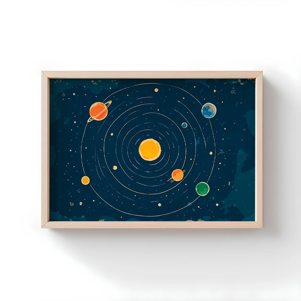 To propozycja dla osób, które szukają estetycznych dekoracji do pokoju dziecka, łączących walory dekoracyjne z delikatnie edukacyjnym charakterem. Plakat Układ Słoneczny wnosi do wnętrza pogodny nastrój, pobudza ciekawość i staje się pięknym akcentem w codziennej przestrzeni dziecka.
