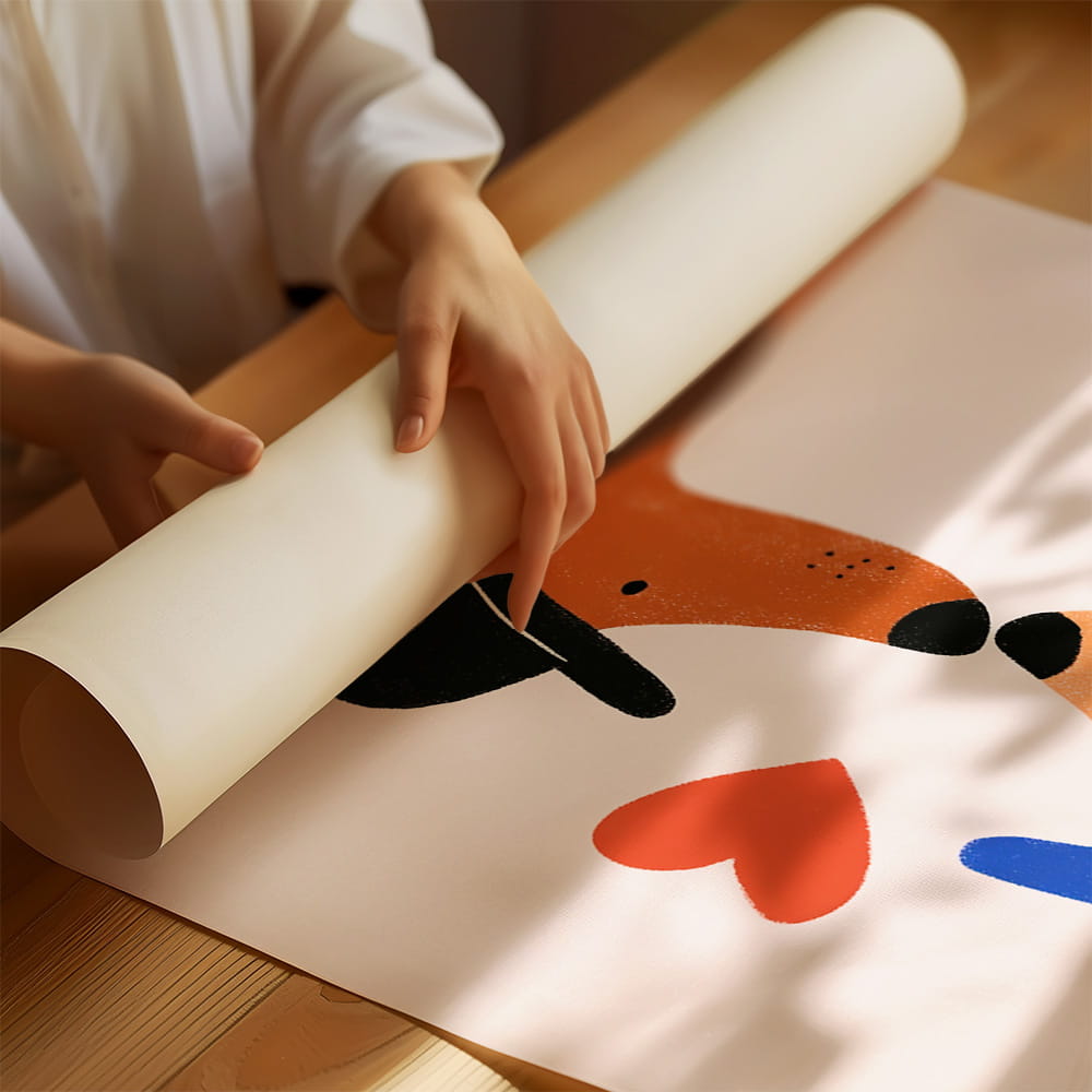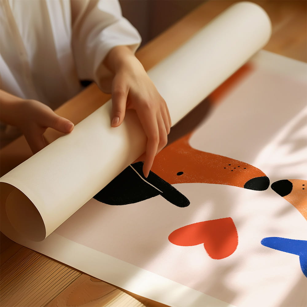 Motyw zwierzęcy połączony z delikatnym przesłaniem bliskości i sympatii doskonale sprawdzi się w aranżacji pokoju malucha, przedszkolaka lub starszego dziecka. Plakat z pieskami pasuje do jasnych, naturalnych i nowoczesnych wnętrz, a także świetnie prezentuje się w zestawieniu z innymi ilustracjami zwierząt i plakatami o lekkim, bajkowym charakterze.