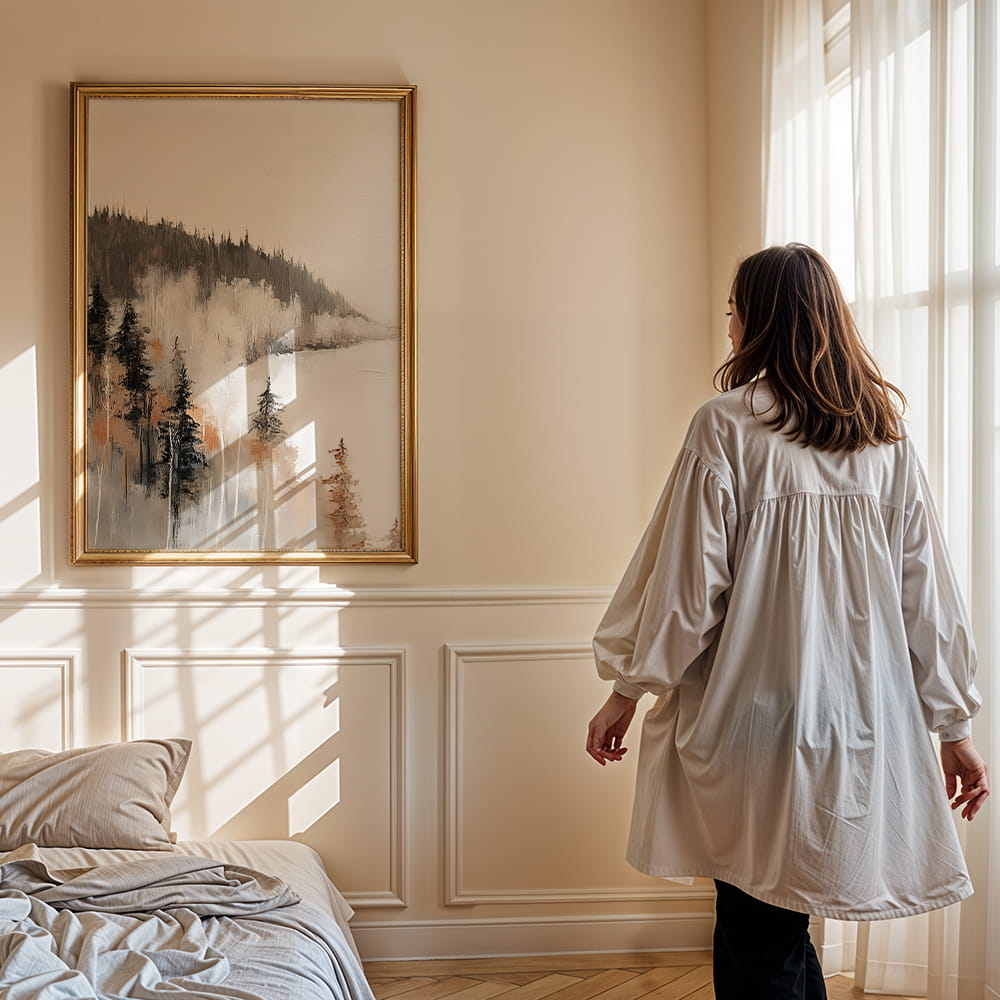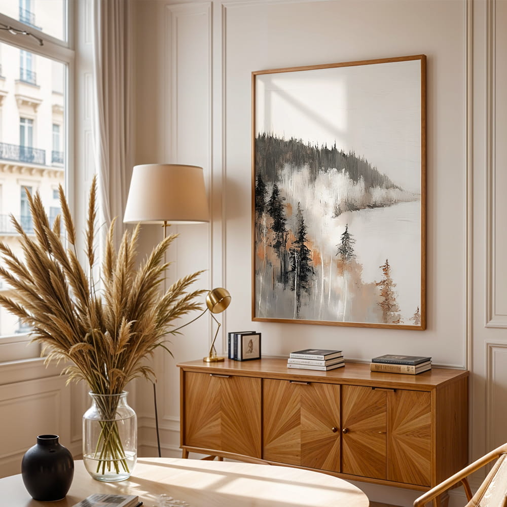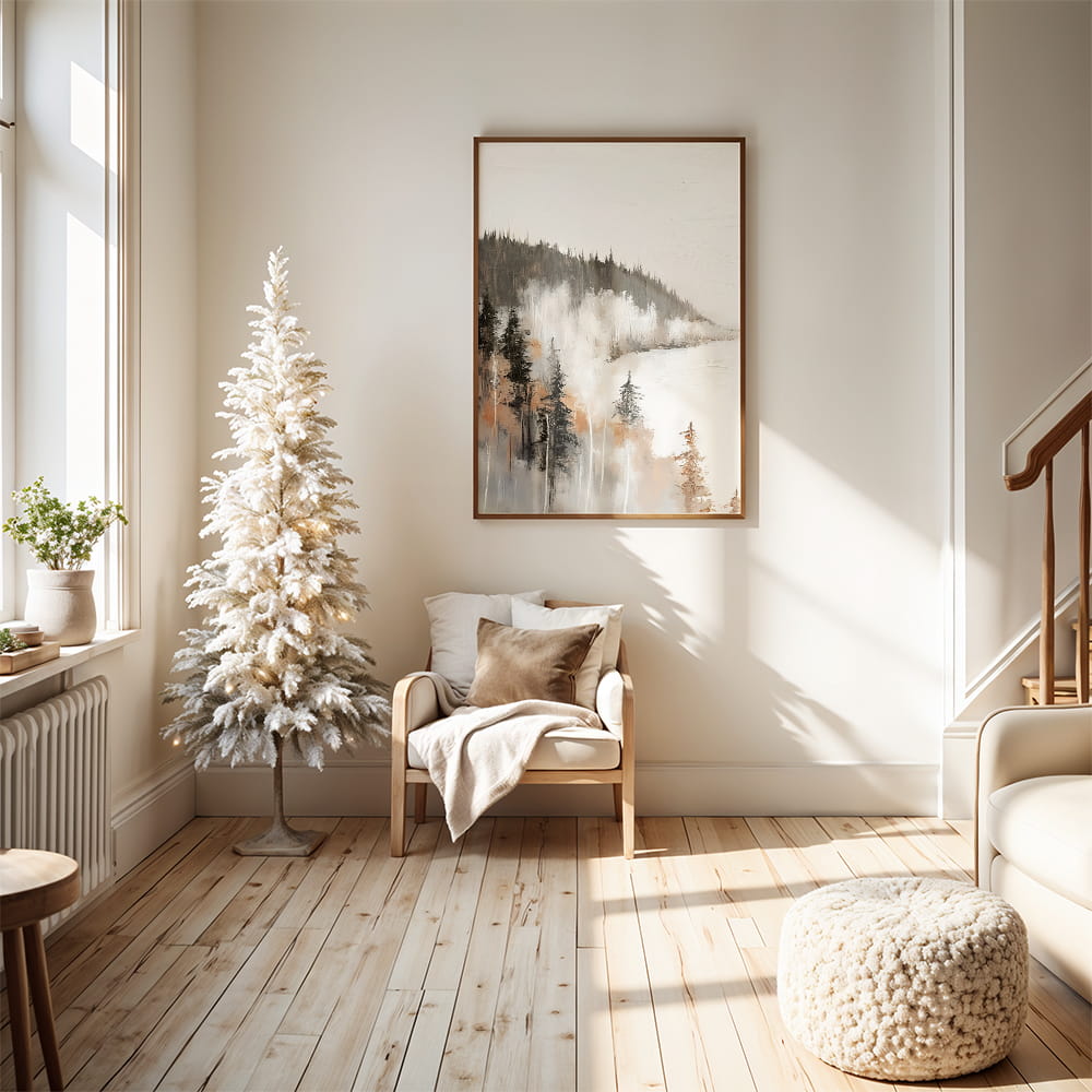 Plakat Zimowy spokój to nastrojowa dekoracja ścienna inspirowana wyciszeniem, delikatnością i pięknem zimowej scenerii. Subtelna kompozycja przyciąga uwagę spokojną estetyką i tworzy we wnętrzu atmosferę harmonii oraz naturalnej lekkości.