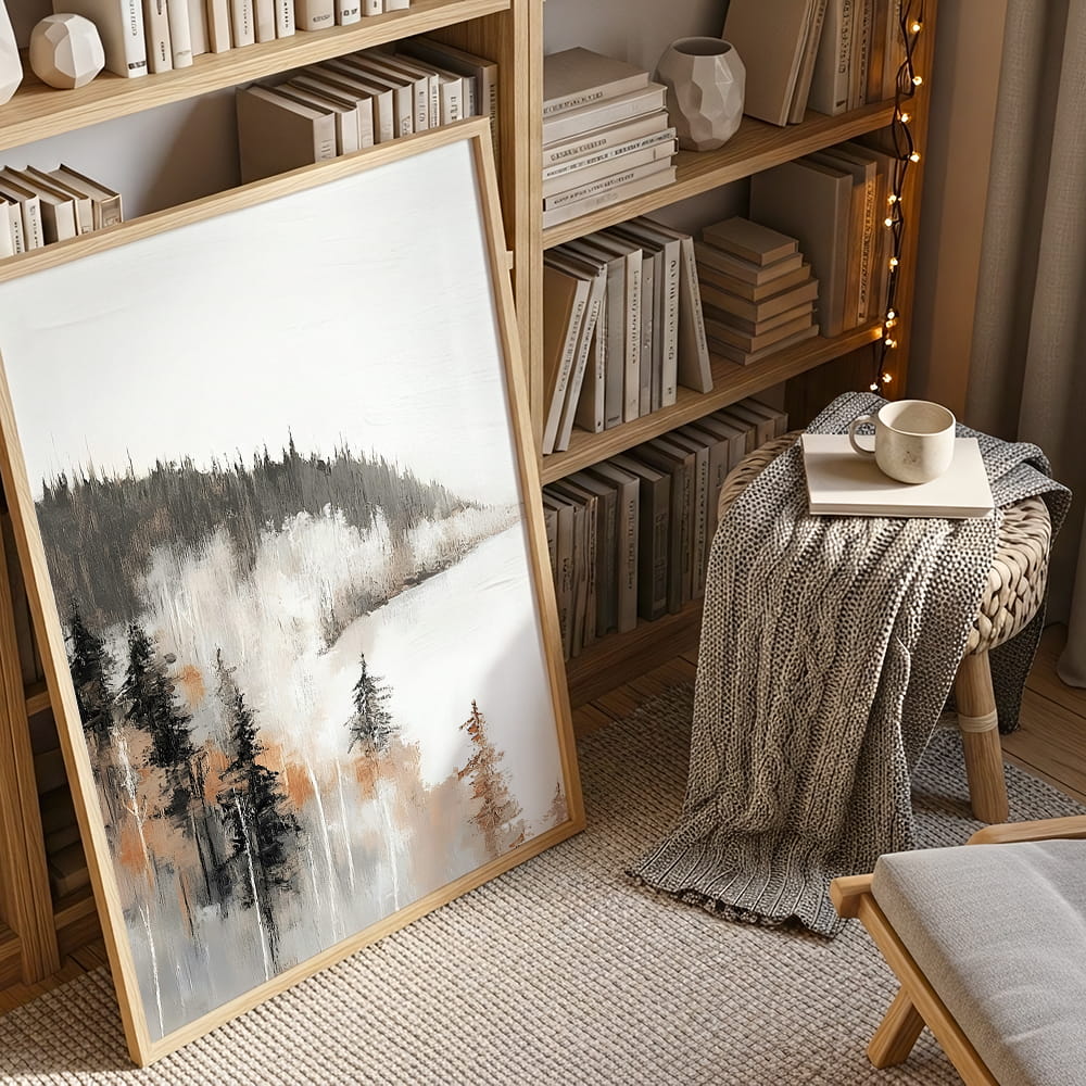 Plakat Zimowy spokój będzie idealnym wyborem dla osób, które lubią zimowe motywy, stonowane kolory i dekoracje ścienne budujące spokojny klimat wnętrza. To także piękny pomysł na sezonowy akcent do domu lub prezent dla miłośnika subtelnych, nastrojowych dodatków.